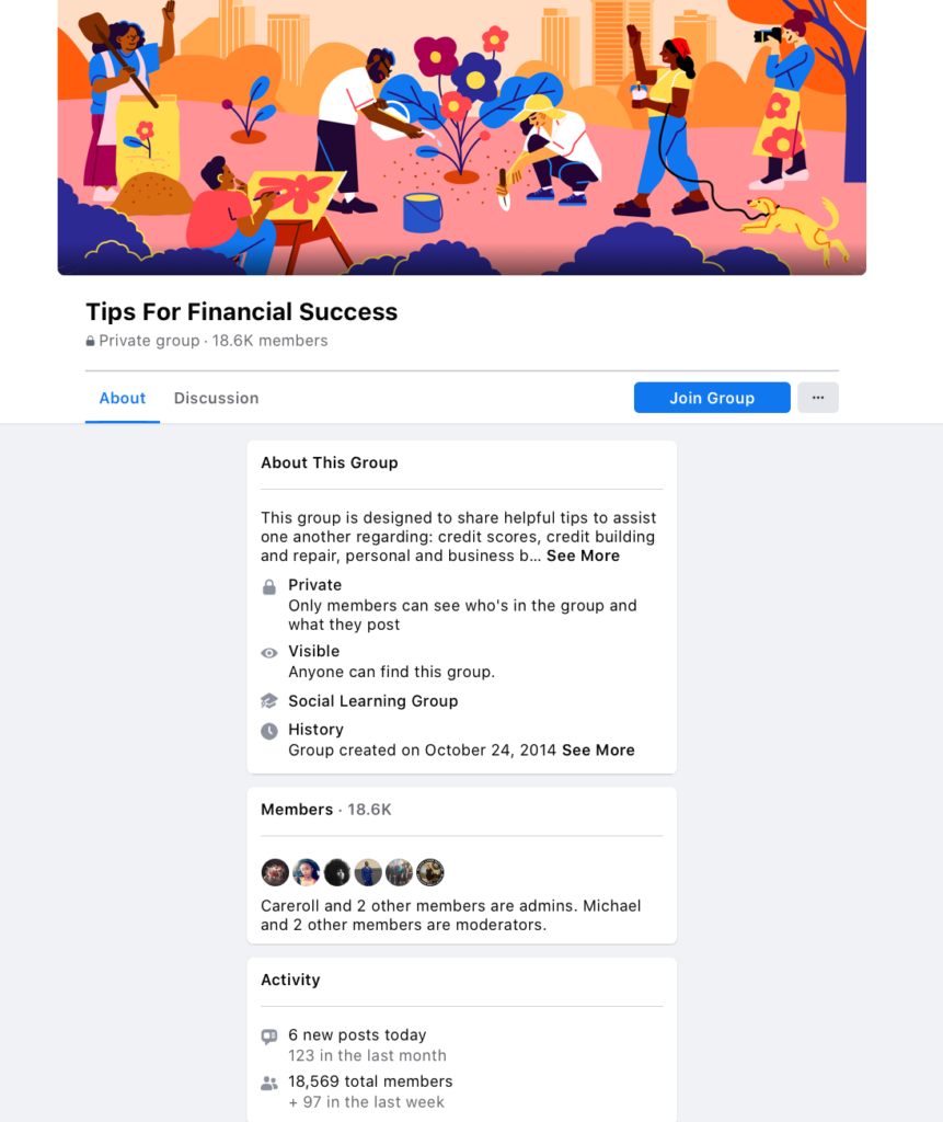 Public Facebook groups can be found by anyone who searches for them, and anyone can see who is in the group and the discussions taking place there. Members do still have to request to join, and they need to join before they can actively participate. Public groups can’t be hidden, and they’re a good option if you want to prioritize quantity in terms of group members. If you want to scale fast and it doesn’t really matter who joins, this option can work.