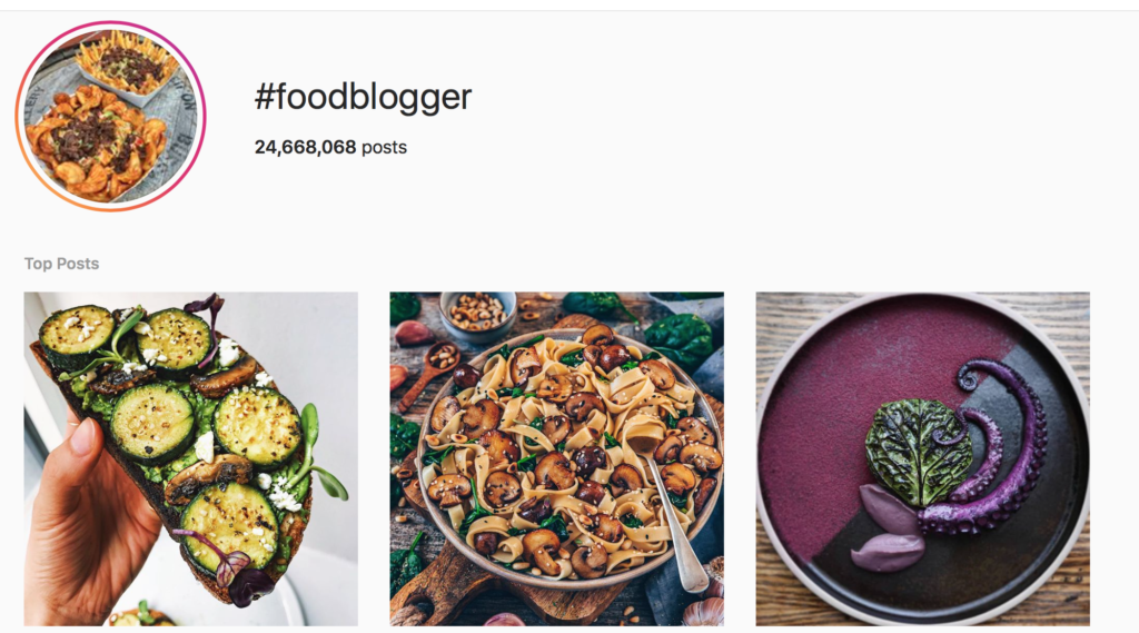But let’s say you want to connect with a local food blogger to promote your restaurant, and to see what food-related hashtags you’re using. My go-to is to type out “food blogger” (this could be swapped with “health blogger,” “life coach,” “world traveler,” “tech junkie,” and so on).