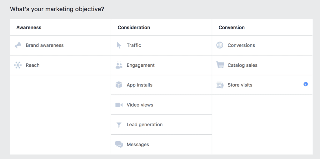 • At the campaign level, you’ll choose an objective.