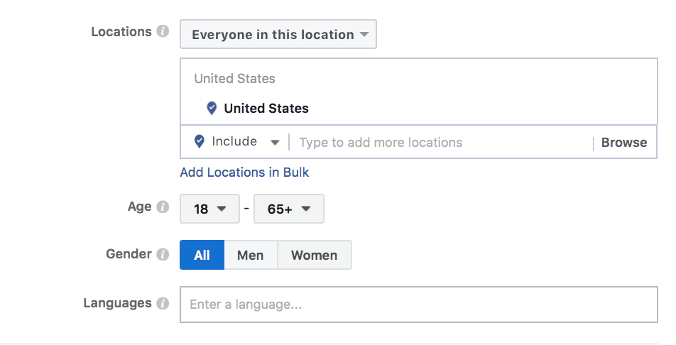 You can target users based on location, or those of certain demographics. These include: