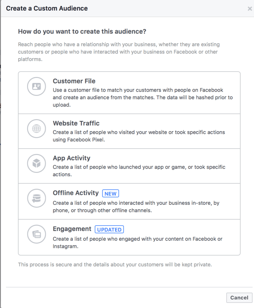 After creating a custom audience, you can create a lookalike audience off of it to try to reach similar customers to your segmented audience lists.