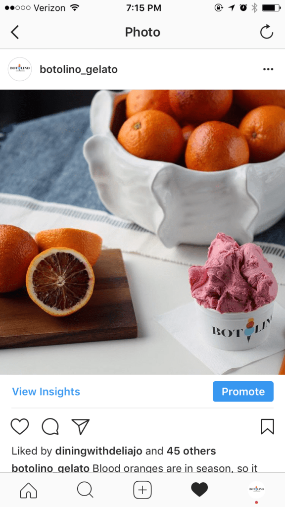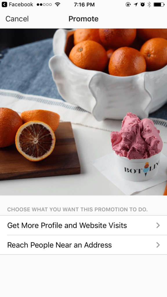 You can boost any post on your Instagram, as long as your profile is established as a business profile. When you click on your posts, you’ll see the ability to “Promote” below the image.