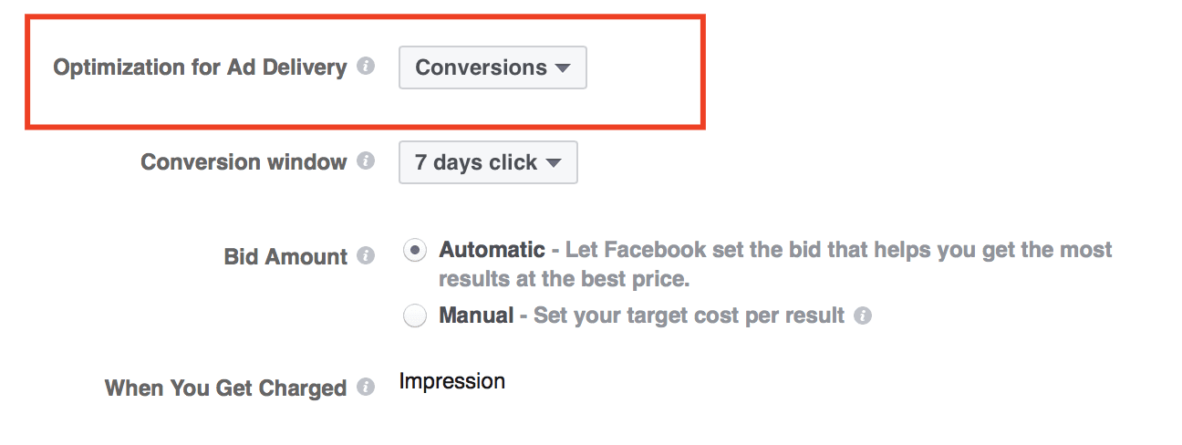 For example, if you optimize your ad campaign for Conversions, Facebook will deliver your ads to the people who are most likely to convert after seeing your ad.