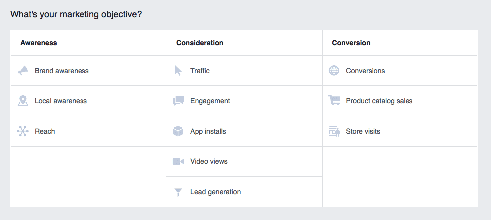 Up next, you’ll find a complete list of Facebook campaign objectives and the available ad delivery methods: