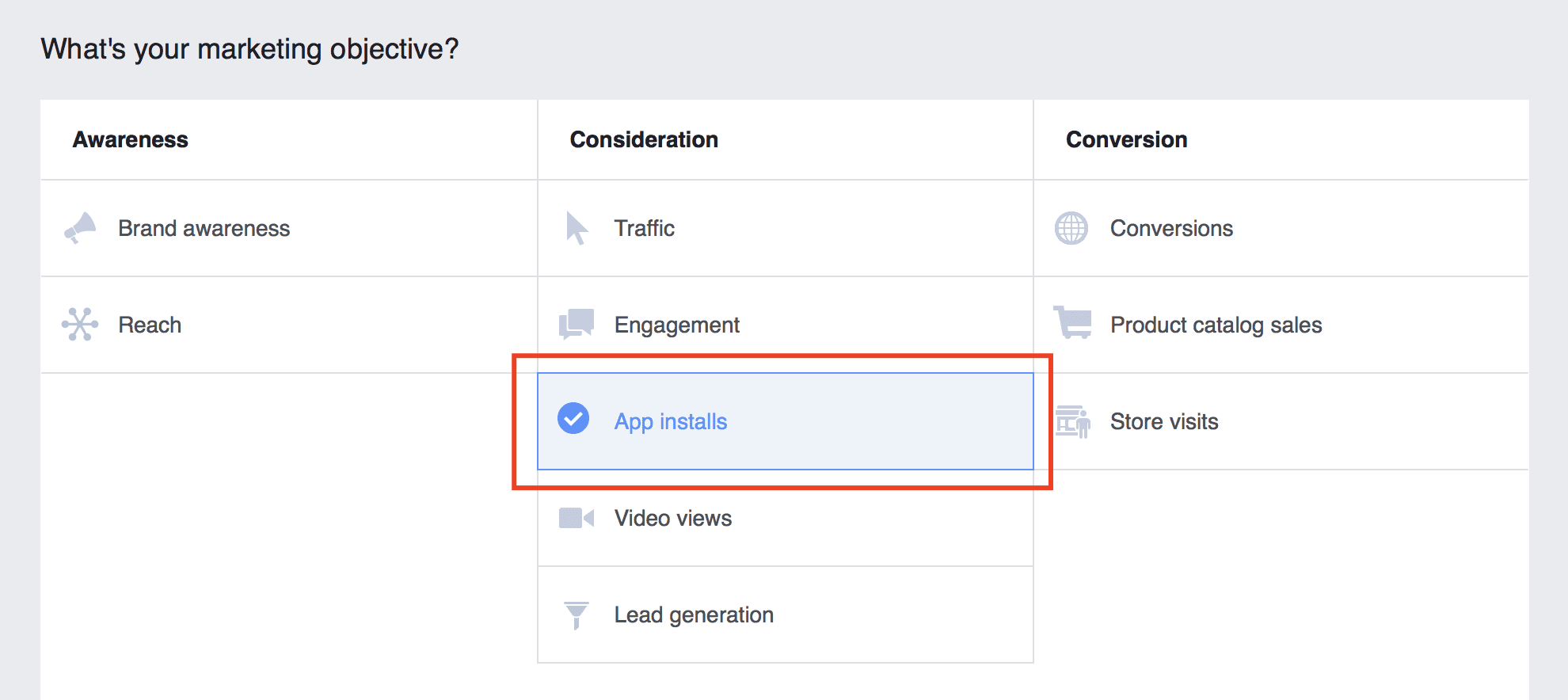 • If you want people to install your app, select the App Install objective
