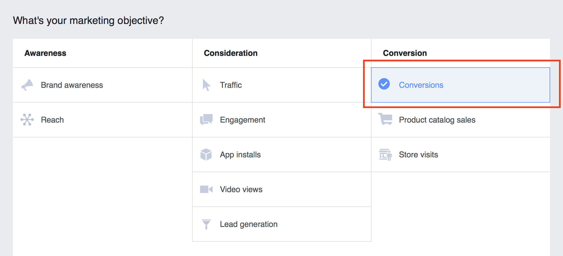 • If you want people to convert on your website, choose the Conversions objective