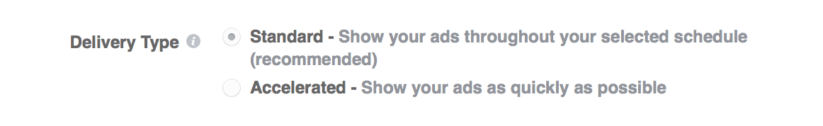 You might need the Accelerated delivery when promoting a time-sensitive (limited-time) offer. For regular campaigns, you can use the Standard option.