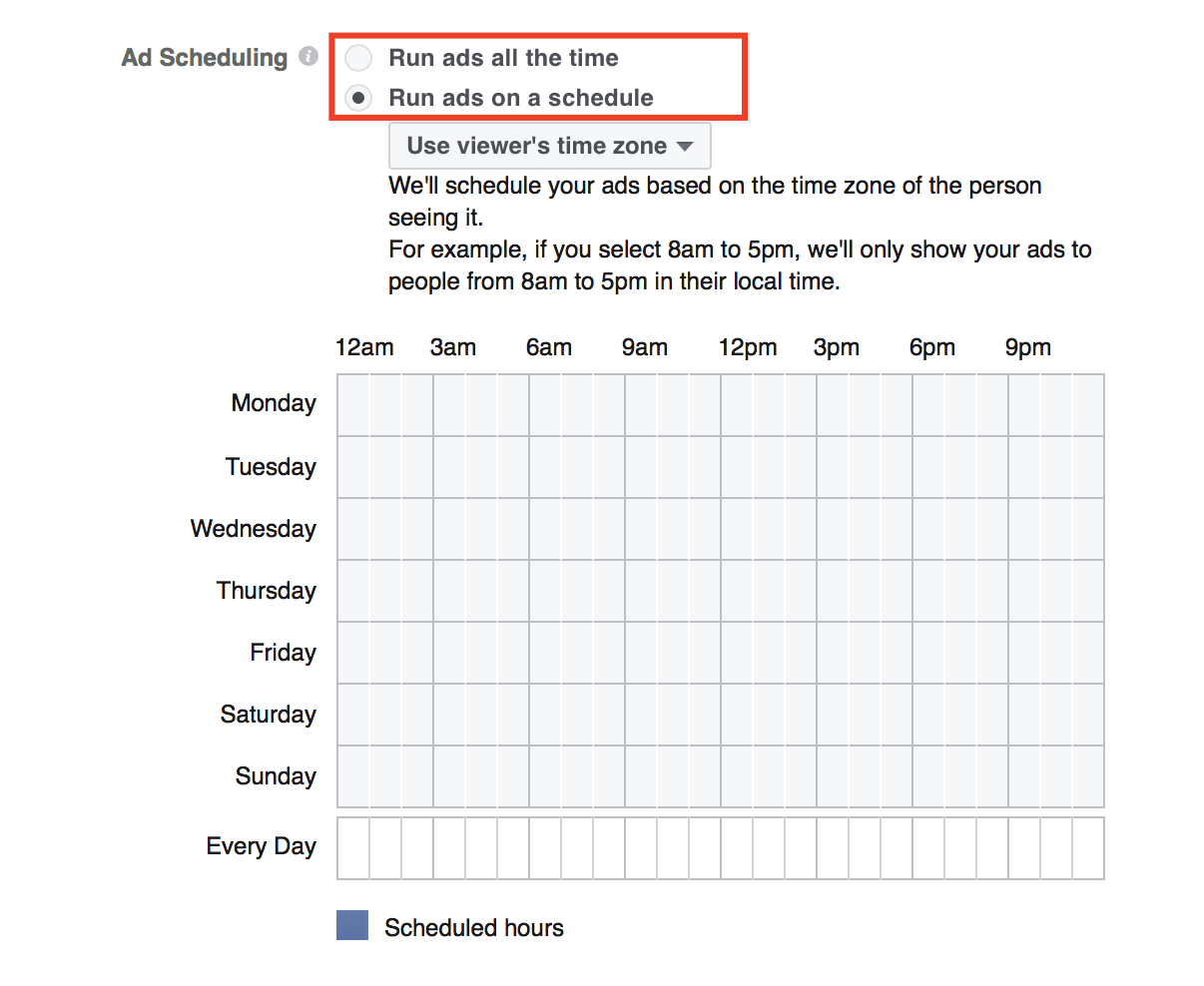 Tip: We recommend using viewers’ time zone to let Facebook schedule your ads based on the different viewers’ time zone.