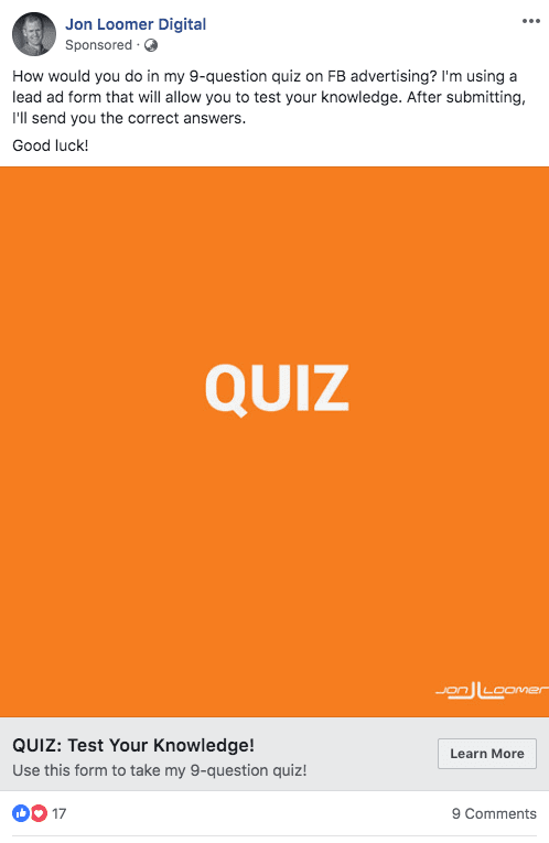 Jon Loomer Digital took an out-of-the-box approach to Facebook Lead Ads campaign type. They dared to ask the questions “what if?”.