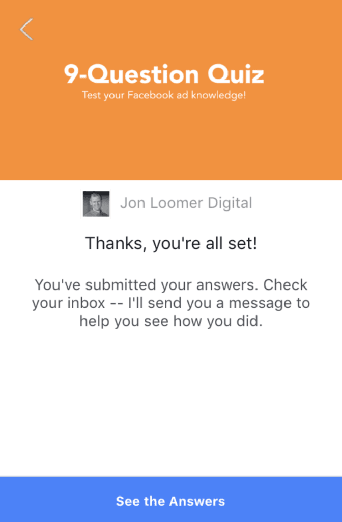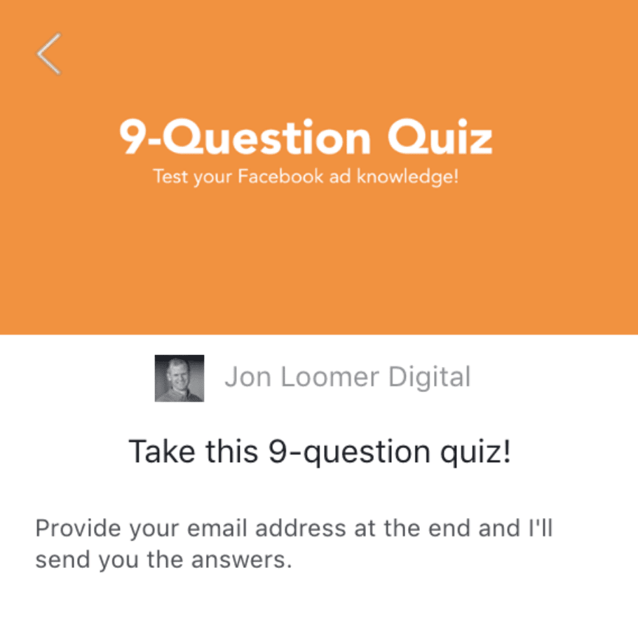 Be open to use new ad types like Messenger ads. If you didn’t jump on the wagon in 2018, then let 2019 be the year you do. Moreover, also be open to try out old thing in a new way, just like using Facebook Lead Ad as a quiz instead (Jon Loomer Digital). - Use Gamification