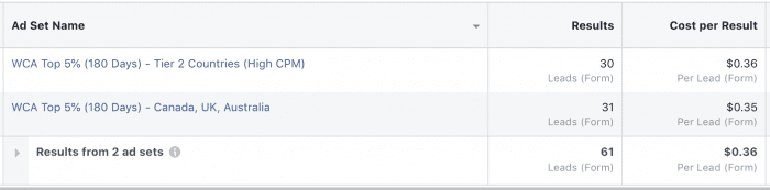 At that point, it had generated 61 leads at a CPL of $0.66. This is an impressive CPL!