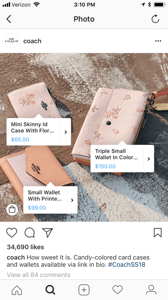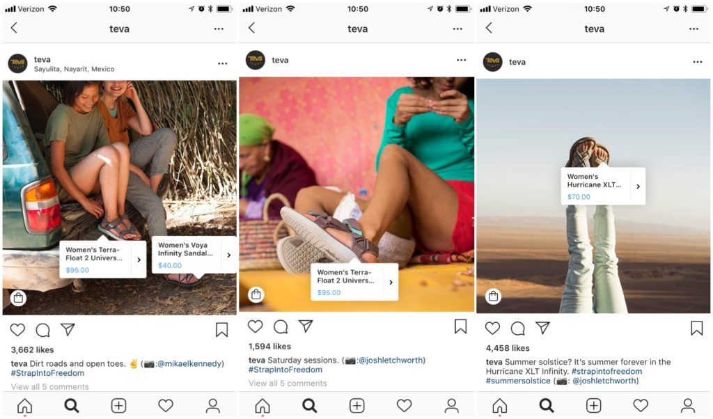 While there aren’t a lot of innovations yet to the icons (i.e., different colors, placements, fonts, etc.), several companies have paved the way by making their shoppable posts unique in other ways.