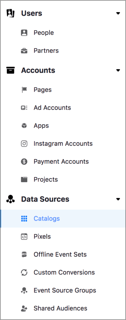 In your business manager settings, click on Data Sources, then Catalogs in your account: