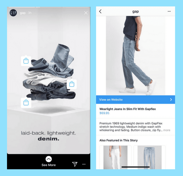 In Gap’s Stories, they showcase their current inventory to bring followers to checkout.