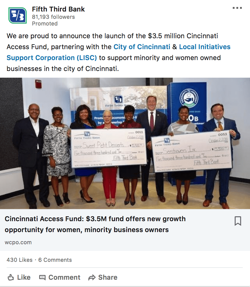 If you’re wondering how exactly to do this, take a look at this example ad from Fifth Third Bank.