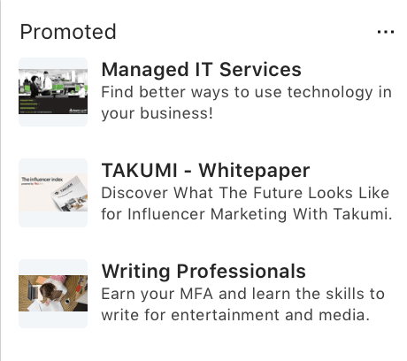 Most LinkedIn ads fall into one of four categories. Let’s take a look at each of them along with some examples.
