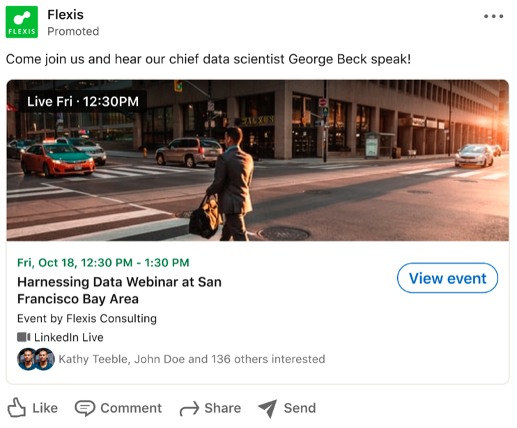 Event ads promote your LinkedIn event, giving it more exposure and, ideally, more registrations.