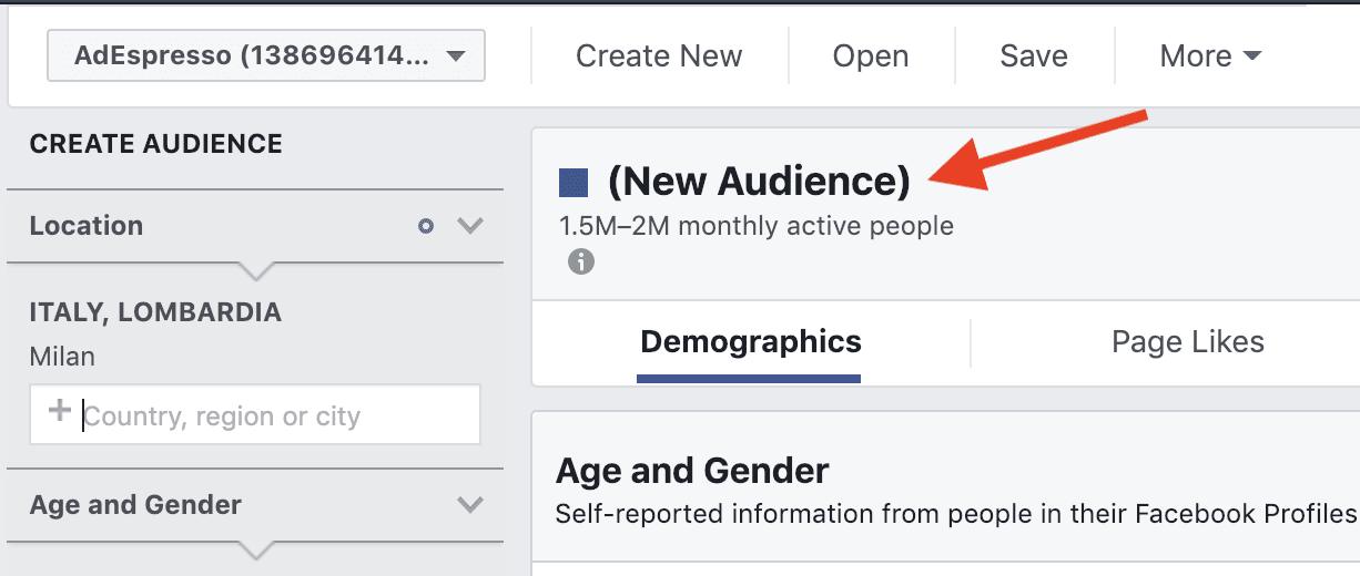 To demonstrate what each section does, we’ll use an audience of AdEspresso Facebook page fans as a case study.