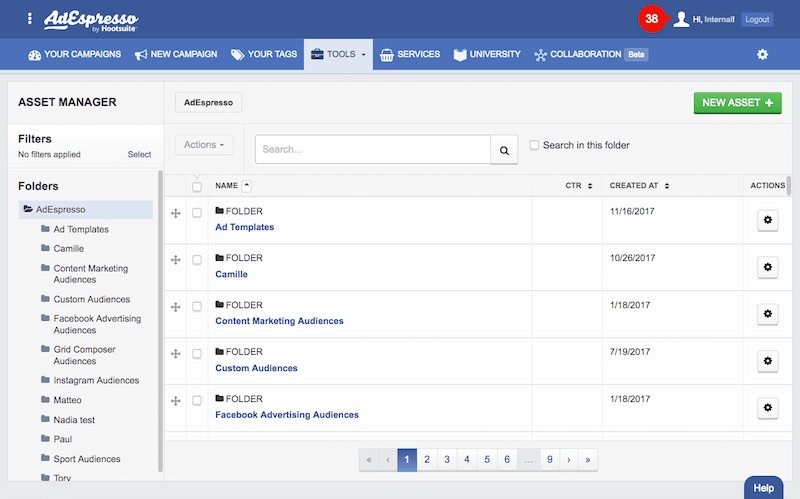 Looking for a way to keep all your Audiences and Assets in one place and organize them according to your clients or ad accounts? With AdEspresso’s Asset Manager you’ll be able to create and save all the Custom Audiences you have on Facebook and build new Saved Audiences based on Locations, Demographics, and Interests.
